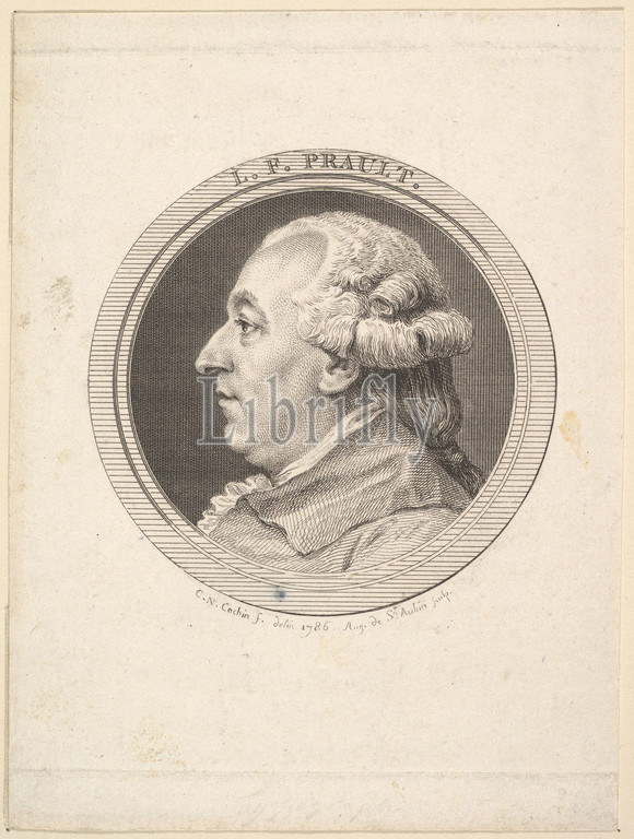 Portrait, L, F, Prault, 1787, Etching, engraving, third state, three, Bocher, Sheet, 4 15/16, 3 3/4, 12.6, 9.5 cm, Prints, Augustin de Saint-Aubin, French, Paris, 1736–1807, After Charles Nicolas Cochin II, 1715–1790
