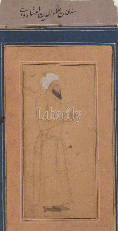 Portrait of Sultan 'Ala-ud-Din, Padshah of Delhi, late 17th century, Attributed to India, Ink, opaque watercolor, and gold on paper, Page: H. 8 1/4 in. (21 cm), Codices