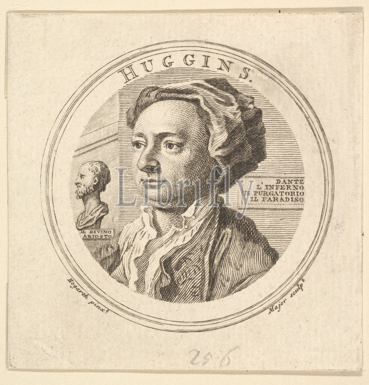 Portrait, William Huggins, translator, Ariosto, 1760, Engraving, Sheet, 3 3/8 x 3 3/8, 8.6 8.6 cm, Prints, After William Hogarth, British, London, 1697–1764