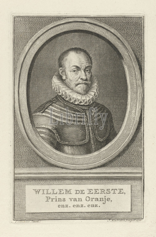 Portrait, William I, Prince, Orange William, First, title, object, Bust, right, Orange, oval, portrait rests, plinth, name, information, written, three lines, Dutch, Willem I, Jacob Houbraken, mentioned, Amsterdam, 1772, paper, engraving