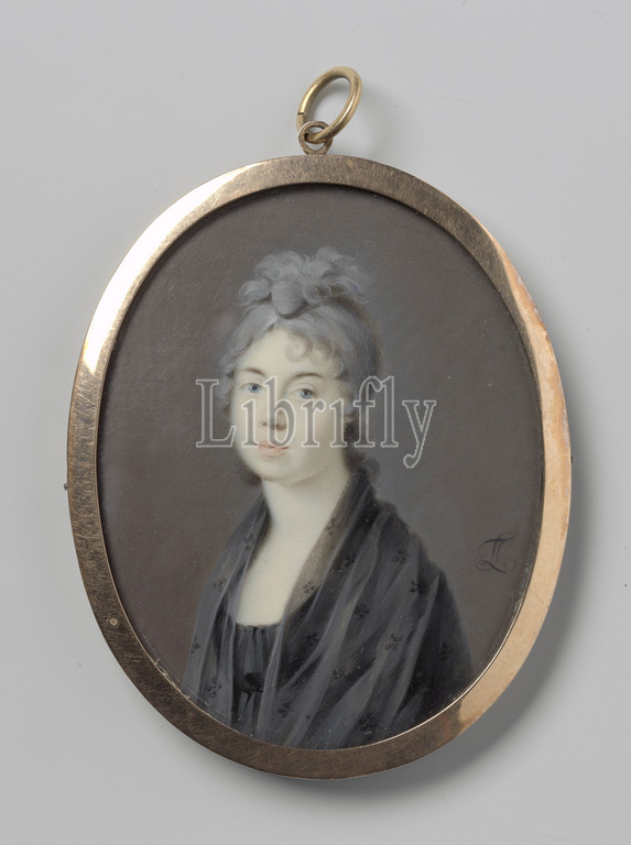 Portrait, woman, black scarf, Bust, left, facing front, Part, portrait image collection, Historical persons, name, BB, Leonardus Temminck, 1763, 1813, ivory, watercolor, paint, metal, precious stone, material, glass