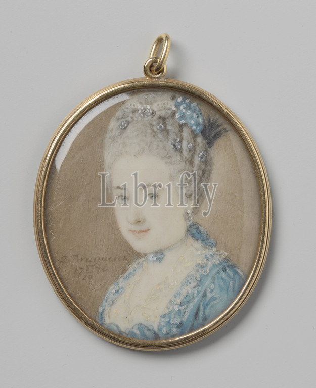 Portrait, Woman, woman, Bust, left, Part, collection, portrait miniatures, Historical persons, name, BB, Daniel Bruyninx, 20-Mar-1776, ivory, watercolor, paint, leather, metal, glass