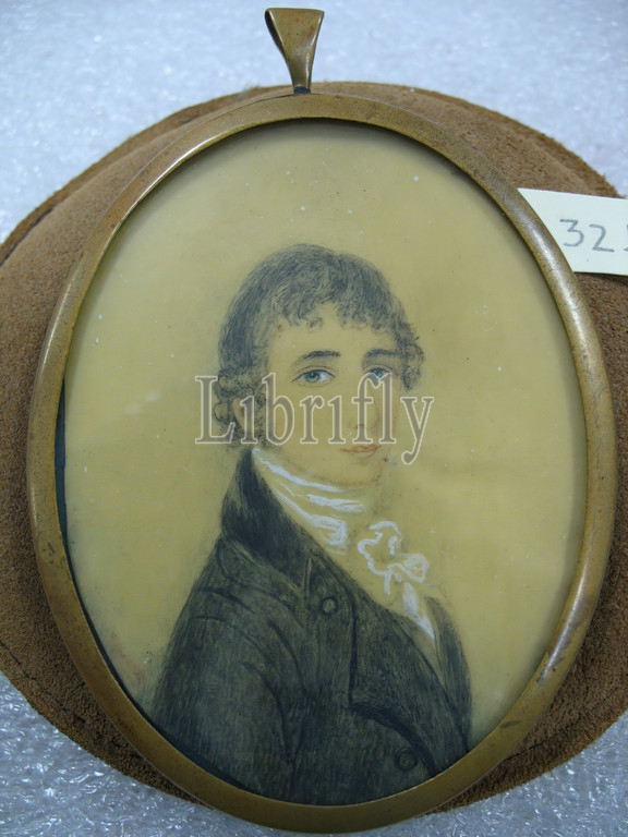 Portrait of a Young Man after Richard Cosway, English, 1742-1821, Watercolor on ivory portrait in brass frame under glass, n.d., Image, sight: 3 1/2 x 2 11/16 in., 8.9 x 6.8 cm, brass, drawing, glass, ivory, metal, miniature, portrait, watercolor