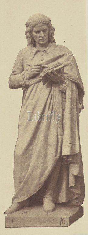 Poussin, Statue by François Rude, Decoration of the Louvre, Paris, Édouard Baldus (French, born Germany, 1813 - 1889), Paris, France, 1852–1857, Salted paper print, 17.2 × 6.4 cm (6 3/4 × 2 1/2 in.)