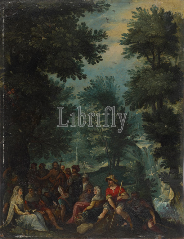 Predigt Johannes des Täufers, um 1600, Öl auf Kupfer, 28.5 x 22 cm, Nicht bezeichnet, Paul Bril, (Art / style of), Antwerpen 1553/54–1626 Rom