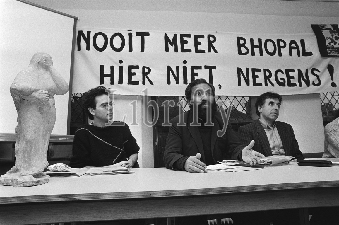 press conference, Never again Bhopal, Utrecht spoke, Dinesh Ahrol, replica statue placed, Bhopal, December 3, 1985, REPLICAS, Statues, press conferences, Netherlands, 20th century, press agency photo, news to remember, documentary, historic photography, 1945-1990, visual stories, human history, Twentieth Century, moments in time