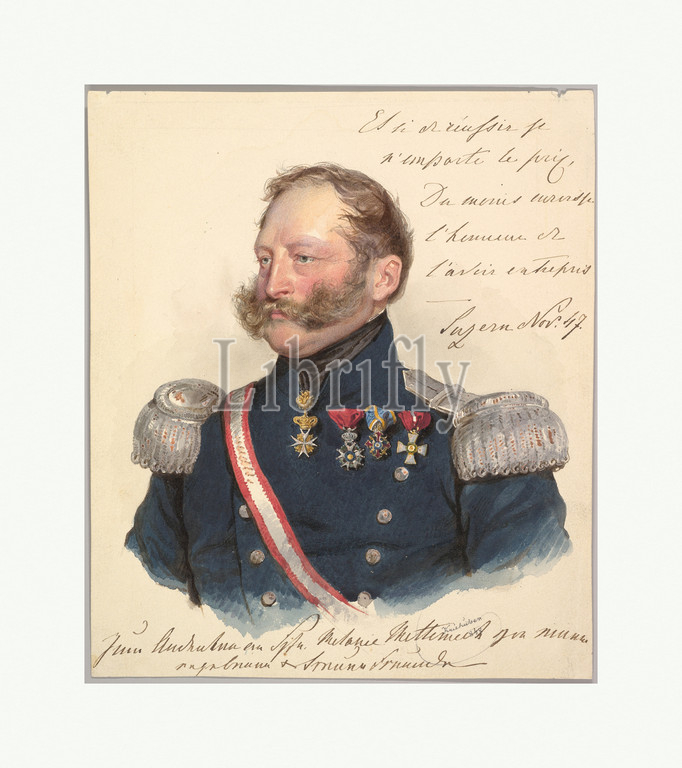 Prince Friedrich of Schwarzenberg, 1847, Watercolor and gouache, graphite, Sheet: 7 1/16 x 6 1/8 in. (18 x 15.5 cm), Drawings, Josef Kriehuber (Austrian, Vienna 1800–1876 Vienna)