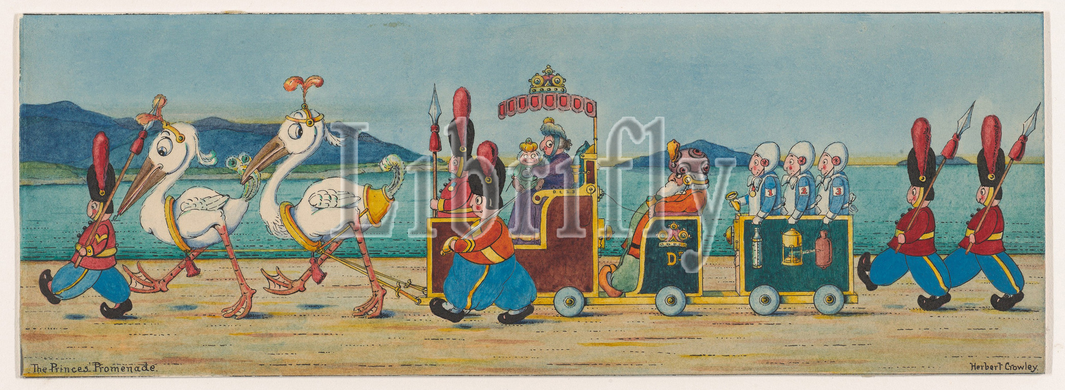 The Prince's Promenade, possible a 'Wiggle Much' design, ca. 1910, Watercolor with pen and black ink, Sheet: 4 1/16 × 11 5/8 in. (10.3 × 29.5 cm), Drawings, Herbert E. Crowley (British, London 1873–1939 Zurich)