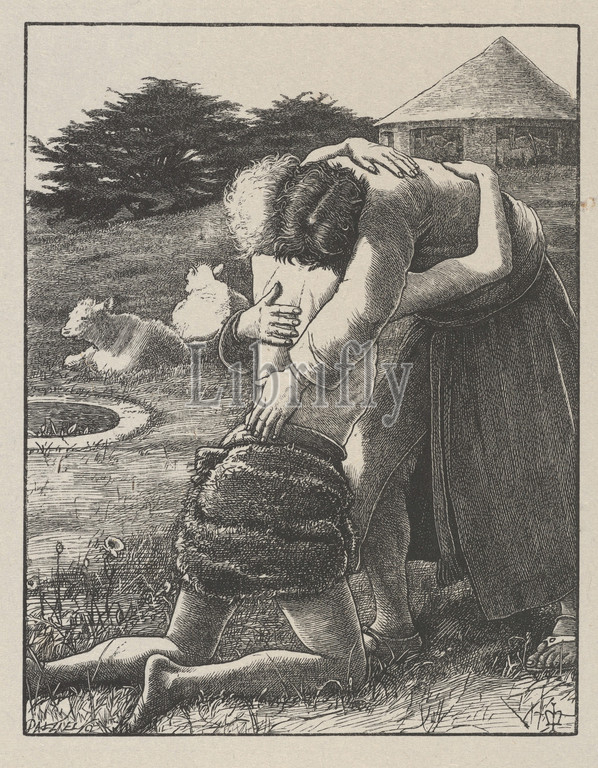 The Prodigal Son (The Parables of Our Lord and Saviour Jesus Christ), 1864, Wood engraving; proof on India paper, image: 5 1/2 x 4 5/16 in. (13.9 x 10.9 cm), Prints, After Sir John Everett Millais (British, Southampton 1829–1896 London), It took Millais seven years to design twenty New Testament parables for the Dalziel Brothers, and the resulting prints are pinnacles of illustration and wood engraving. The artist wrote to his engravers, 'I can do ordinary drawings as quickly as most men, but these designs can scarcely be regarded in the same light—each Parable I illustrate perhaps a dozen times before I fix and the ‘Hidden Treasures’ I have altered on the wood at least six times