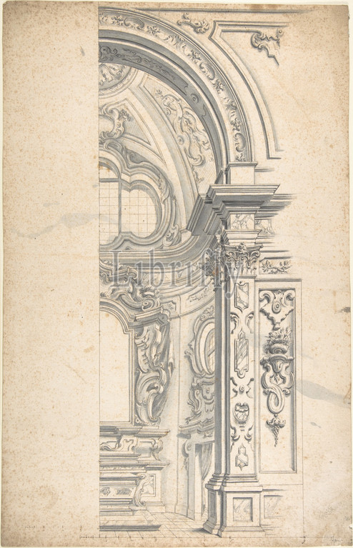 Project, Chapel, 1700–1780, Pen, brown, gray ink, brush, wash, lead point, ruled, compass construction, Measuring scale, bottom, drawing, pen, brown, 17 5/8 x 11 3/8, 44.8 28.9 cm, Drawings, Anonymous, Italian, Piedmontese, 18th century