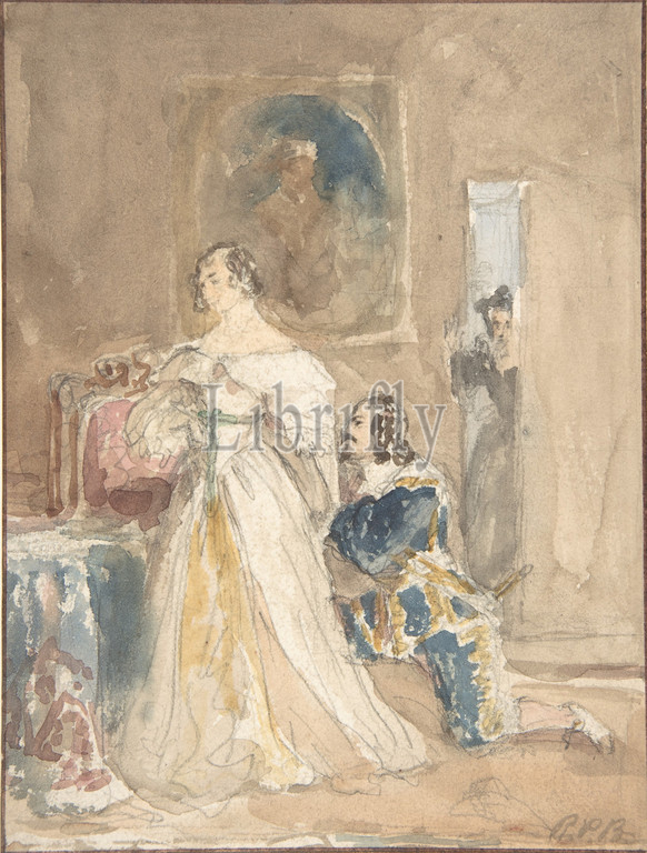 The Proposal (recto); Unfinished drawing of a horse and rider (verso), after 1820, Brush and watercolor over graphite (recto); graphite (verso), sheet: 6 7/8 x 5 3/16 in. (17.5 x 13.2 cm), Drawings, Attributed to Richard Parkes Bonington (British, Arnold, Nottinghamshire 1802–1828 London)