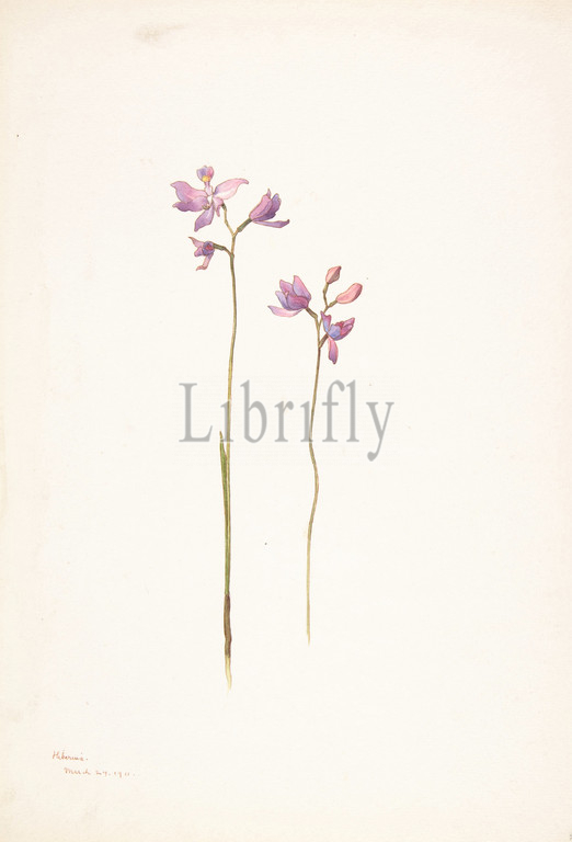 Purple Orchids, Lilies, March 24, 1911, Watercolor, brown ink, graphite, sheet, 13 11/16 x 9 15/16, 34.8 25.2 cm, Drawings, Margaret Neilson Armstrong, American, New York, 1867–1944