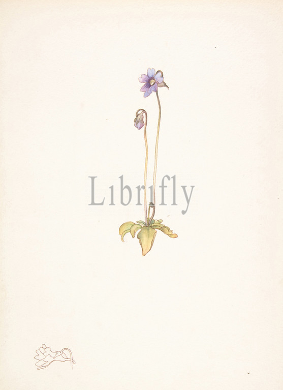 Purple Pinguicula, March, 1911, Watercolor, brown ink, graphite, details, sheet, 13 11/16 x 9 15/16, 34.8 25.2 cm, Drawings, Margaret Neilson Armstrong, American, New York, 1867–1944