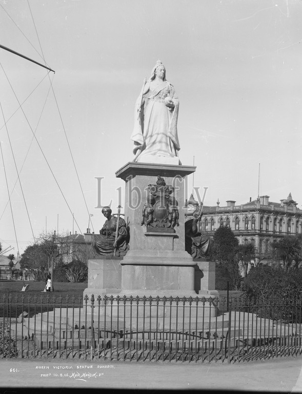 Queen Victoria Statue, Dunedin, Muir & Moodie studio, photography studio, circa 1905, Dunedin, gelatin dry plate process