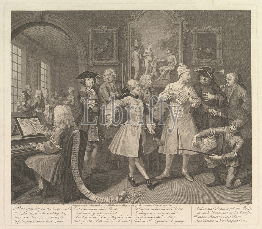 Rake, Progress, Plate 2, June 25, 1735, Etching, engraving, fourth state, four, plate, 13 15/16 x 16 3/16, 35.4 41.1 cm, Prints, William Hogarth, British, London, 1697–1764