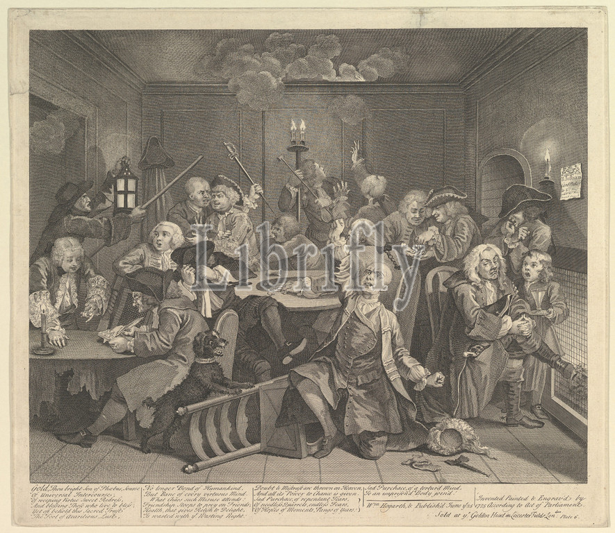 A Rake's Progress, Plate 6, June 25, 1735, Etching and engraving; second state of three, sheet: 14 3/16 x 16 1/4 in. (36 x 41.2 cm), Prints, William Hogarth (British, London 1697–1764 London)