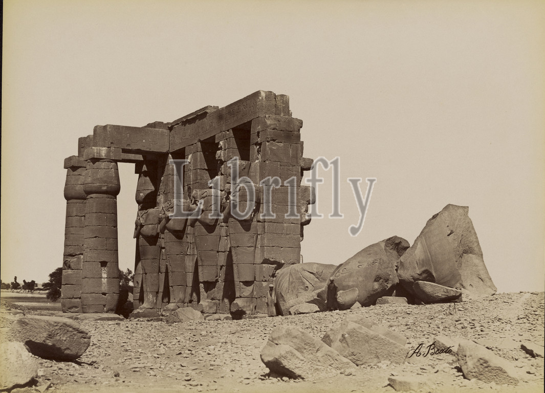 Ramesseum with the Statue of Ramses II , Ramesseum Avec la Statue; Antonio Beato (English, born Italy, about 1835 - 1906); 1880 - 1889; Albumen silver print