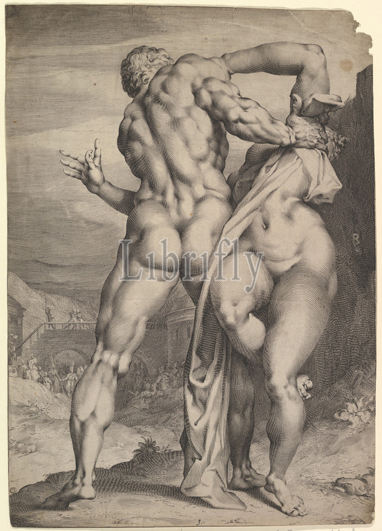 The Rape of the Sabine Women, ca. 1627, Engraving; sixth state of six, 39.8 x 28.0 cm, Prints, Adriaen de Vries (Netherlandish, The Hague ca. 1545–1626 Prague), Jan Muller (Netherlandish, Amsterdam 1571–1628 Amsterdam)