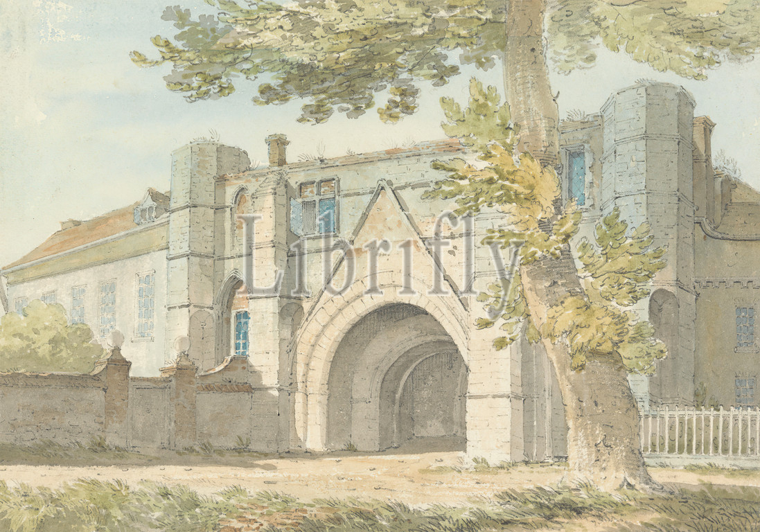 Reading Abbey Gateway, Edward Hawke Locker, 1777–1849, British, 1803, Watercolor, graphite, medium, slightly textured, cream wove paper, Sheet, abbey, architectural subject, gateway, windows, Berkshire, England, Reading, Reading abbey, United Kingdom
