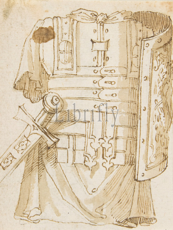 recto, Drawing, Antique Armor, verso, Architectural Fragment, 19th century, Pen, brown ink, wove paper, sheet, 4 1/8 x 3 1/4, 10.4 8.2 cm, Drawings, Anonymous, French