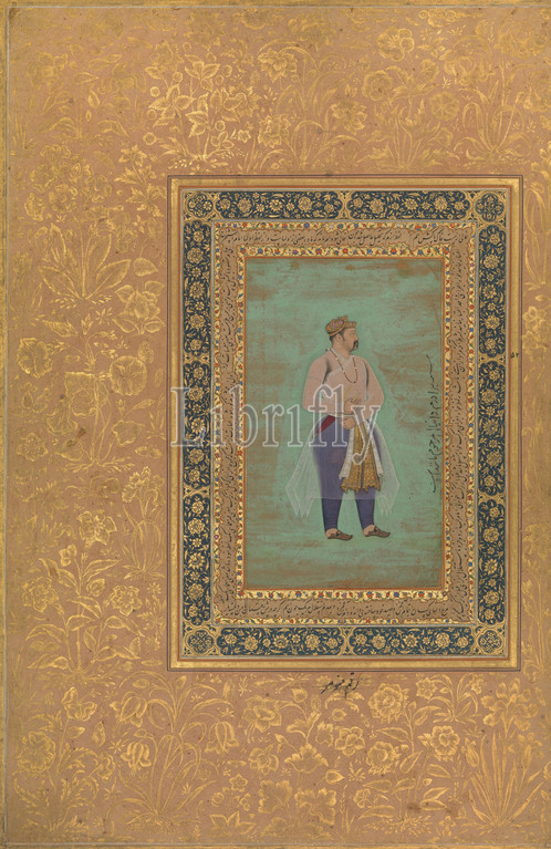 recto, Portrait, Prince Danyal, Folio, Shah Jahan Album, late 16th century, verso, ca, 1500, Attributed, India, Ink, opaque watercolor, gold, paper, H, 15 5/16, 38.9 cm, Miscellaneous, Painting by Manohar, active ca., 1582–1624, richly illuminated folio, calligraphy features, work, preeminent Timurid, calligrapher, Sultan, Ali Mashhadi, Patronized, Timurid court, Mashhadi, poet, recognized master, nasta'liq script