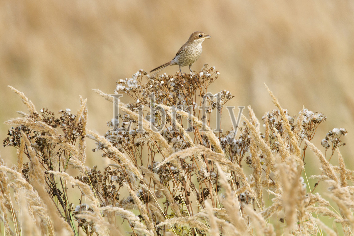 Red-backed Shrike perched on plant, Lanius collurio, Netherlands