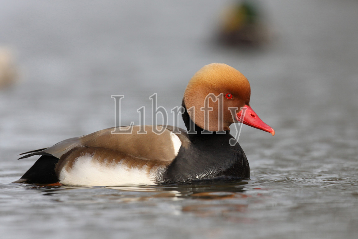 Red-crested Pochard male swimming, Netta rufina