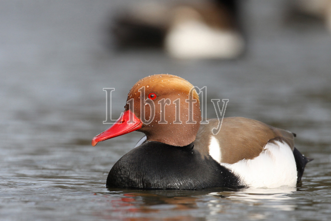 Red-crested Pochard male swimming, Netta rufina