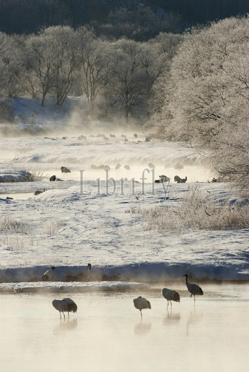 Red-crowned Cranes in early morning, Grus japonensis