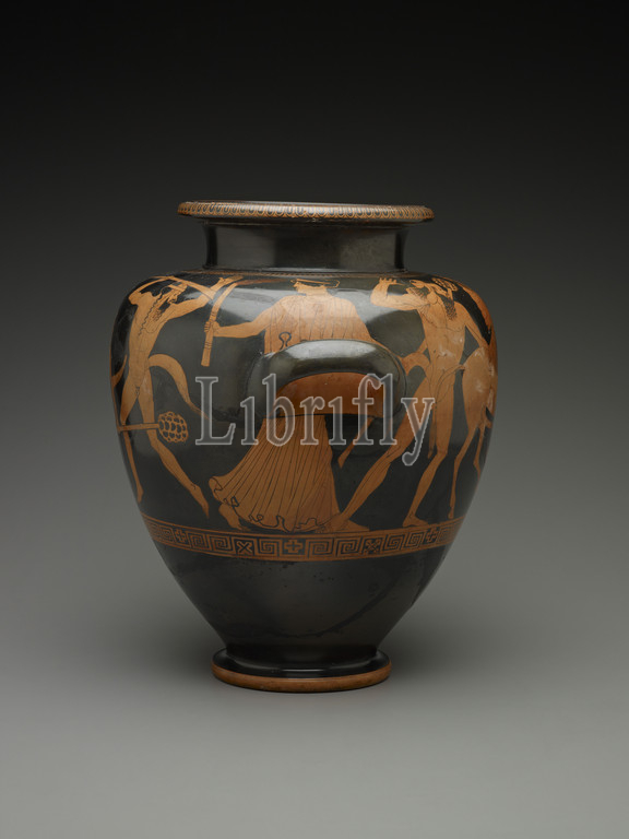 Red-figure Stamnos: Dionysiac Procession, 470-440 B.C.E., terra-cotta, 14-3/4 in., Ancient Art of the Mediterranean