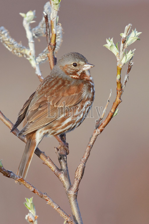 Red Fox Sparrow in willow, Passerella iliaca
