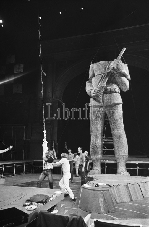 Rehearsal with the set piece, the statue of Che Guevara, June 19, 1969, images, set pieces, operas, rehearsals, theaters, The Netherlands, 20th century press agency photo, news to remember, documentary, historic photography 1945-1990, visual stories, human history of the Twentieth Century, capturing moments in time