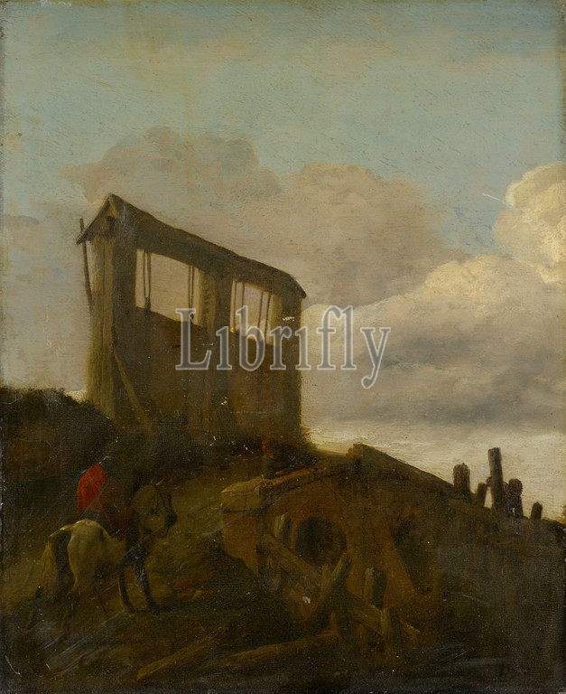 Reiter bei einer Schleuse, Öl auf Eichenholz, 31 x 23 cm, Nicht bezeichnet, Philips Wouwerman, (Art / style of), Haarlem 1619–1668 Haarlem