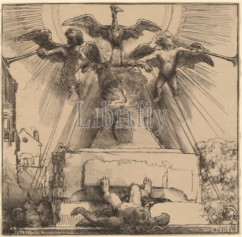Rembrandt van Rijn, Dutch, 1606, 1669, Phoenix, Statue Overthrown, 1658, etching, drypoint