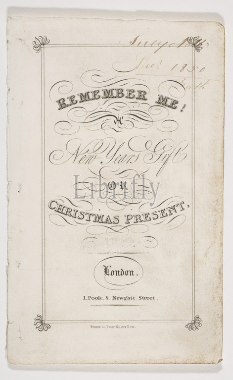 Remember Me! New Year, Gift, Christmas Present, 1826, Engraving, sheet, 4 9/16 x 2 5/8, 11.6 6.7 cm, Prints, Fenner, British, early 19th century