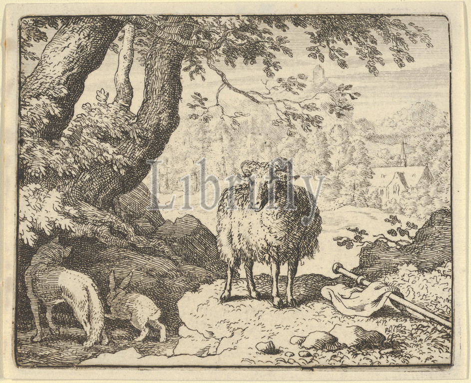 Renard Convinces, Rabbit, Enter, Burrow, Kills, Hendrick van Alcmar, Renard, Fox, 1650–75, Engraving, third state, four, Plate, 3 11/16, 4 1/2, 9.3, 11.5 cm, Prints, Allart Everdingen, Dutch, Alkmaar, 1621–1675, Amsterdam
