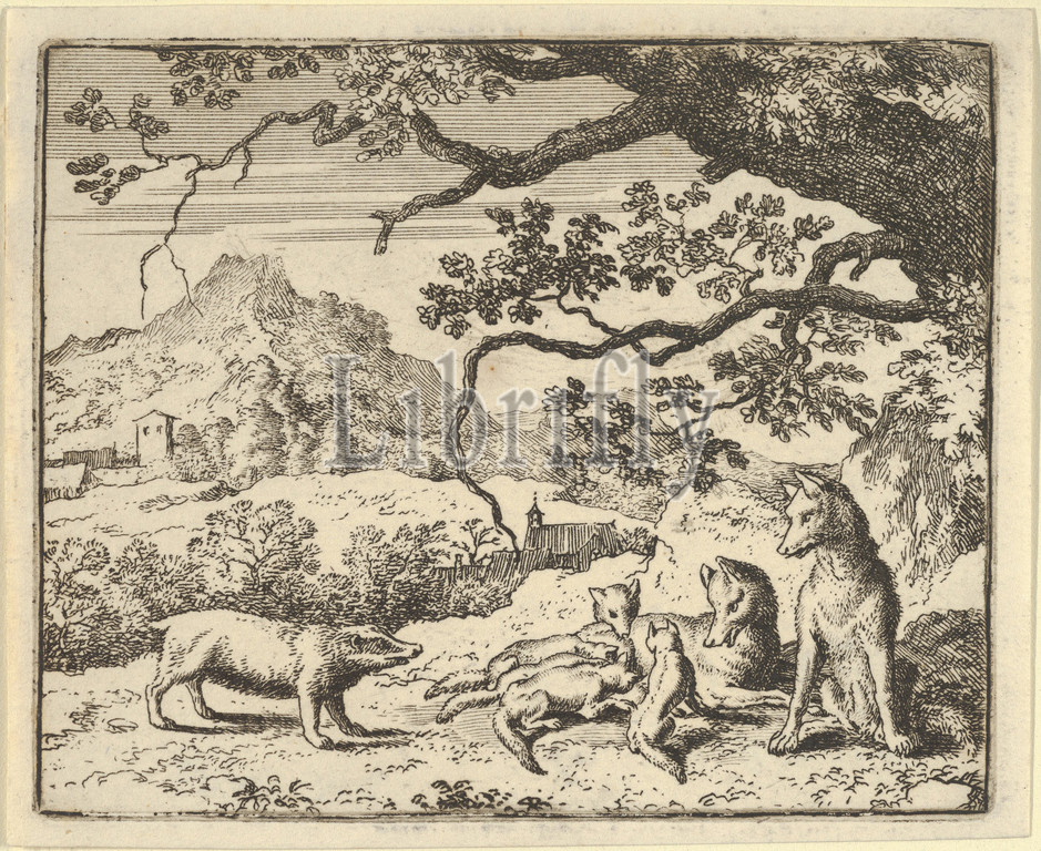 Renard Receives, New Citation, Badger, Hendrick van Alcmar, Renard, Fox, 1650–75, Engraving, fifth state, five, Plate, 3 3/4, 4 9/16, 9.5, 11.6 cm, Prints, Allart Everdingen, Dutch, Alkmaar, 1621–1675, Amsterdam