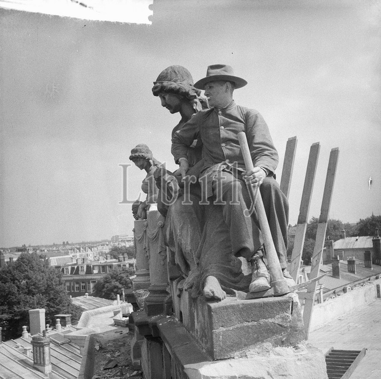 Rest, lap, Man, statue, Gallery, June 14, 1961, demolition, workers, statues, Netherlands, 20th century, press agency photo, news to remember, documentary, historic photography, 1945-1990, visual stories, human history, Twentieth Century, moments in time