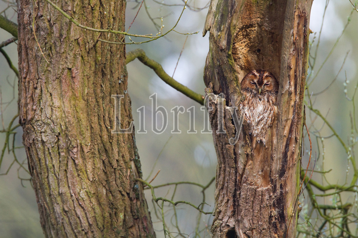 Resting Tawny Owl in tree, Strix aluco