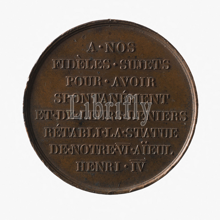 Restoration of the statue of Henri IV on the Pont Neuf, October 28, 1817, Gayrard, Raymond, Engraver in medals, Array, Numismatics, Medal, Paris, Dimensions - Work: Diameter: 3.2 cm, Weight (type dimension): 20.97 g