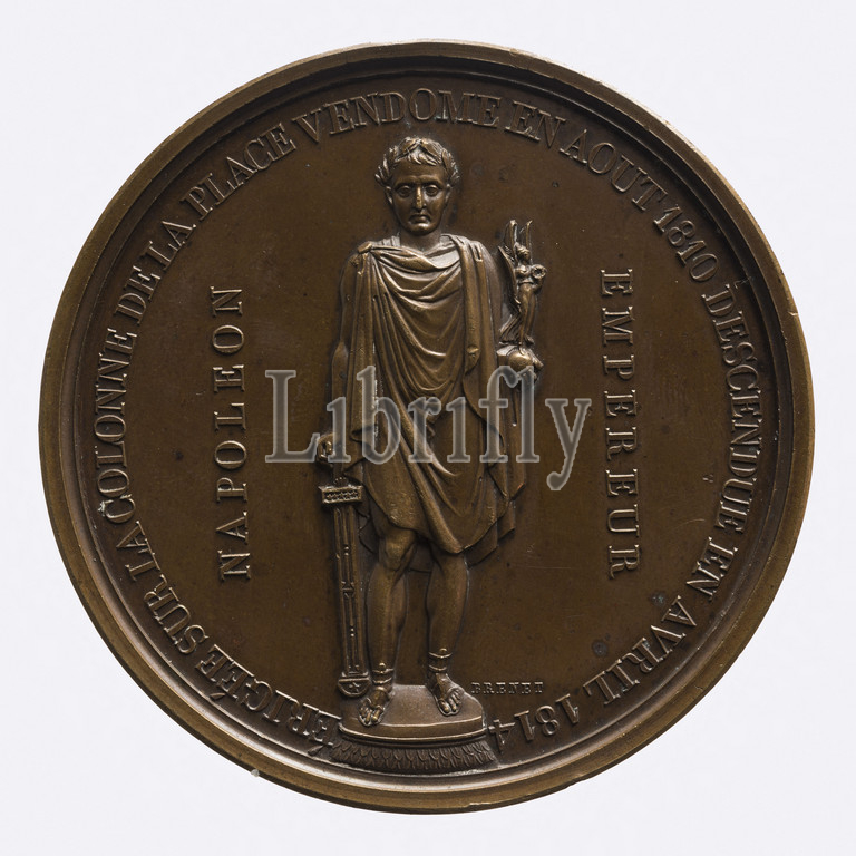Restoration, statue, Napoleon I, column, Austerlitz, July 28, 1833, Brenet, Nicolas, Engraver, medals, 1833, Numismatics, Medal, Copper, Dimensions, Work, Diameter, 5.5 cm, Weight, type dimension, 68.78 g