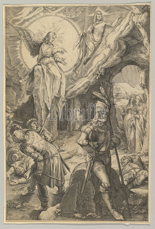 Resurrection, Passion, Christ, ca, 1623, Engraving, sheet, 7 11/16, 5 1/16, 19.5, 12.8 cm, Prints, Ludovicus Siceram, Flemish, active Antwerp, ca., After Hendrick Goltzius, Netherlandish, Mühlbracht, 1558–1617, Haarlem