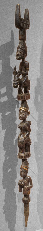 ritual staff, Yoruba people, 1920-1950, wood, pigment, iron, 53-1/2 x 4-1/2 x 2-1/2 in., African Art