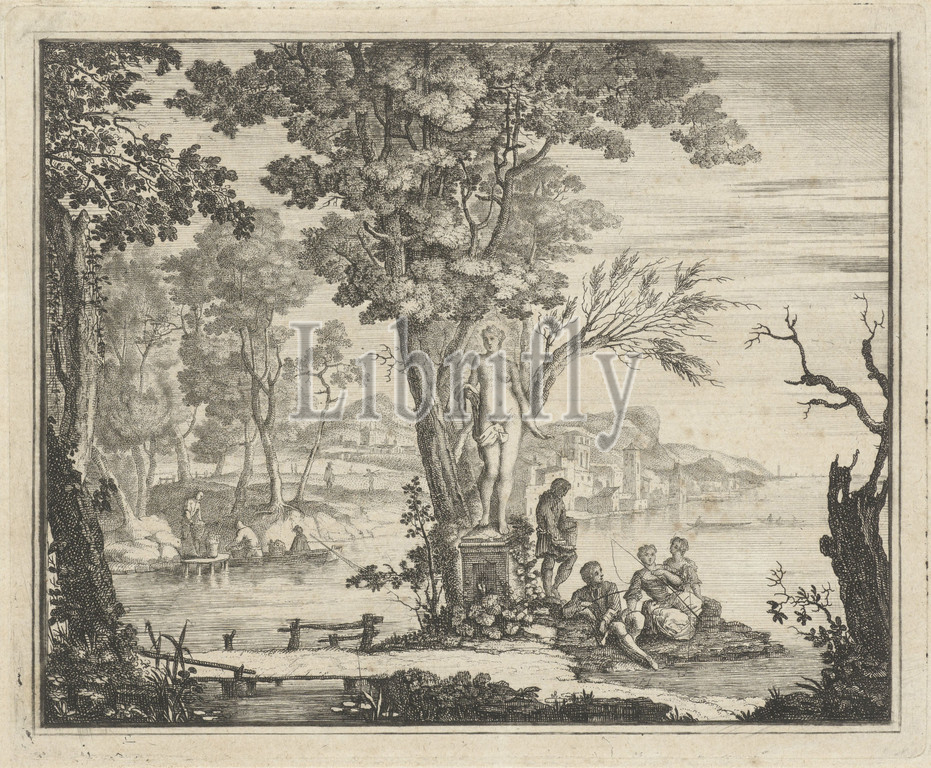 1703 - 1754, Gerard Melder, Kupferstich-Kabinett, River landscape, Venus, anglers, arkheia, art, engraving, gravures anciennes, old master prints, statue
