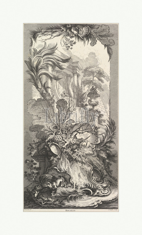 Rocaille, Rock Garden, ca, 1737, Etching, engraving, Sheet, 19 5/8 x 9 13/16, 49.8 25 cm, Claude Augustin Duflos le Jeune, French, Paris, 1700–1786, After François Boucher, 1703–1770