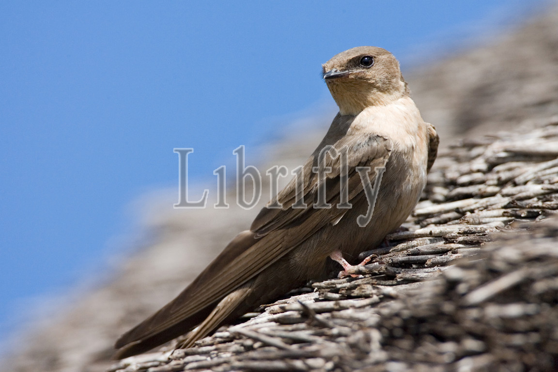 Rock Martin perched on roof, Ptyonoprogne fuligula