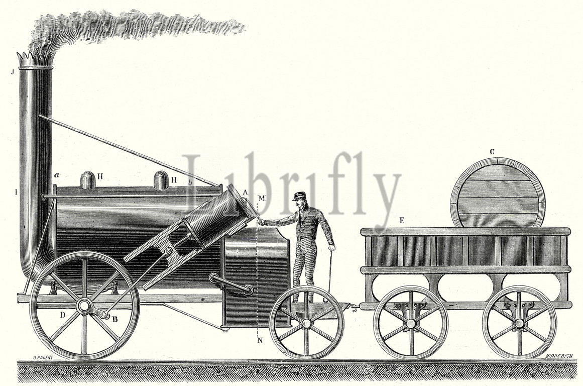 the 'rocket', rocket, locomotive, steam locomotive, steam, age of steam, george stephenson, robert stephenson, steam engine, techlogy, mechanical, train, transport, travel, track, transportation, rail, railroad, traffic, railway, railroad, industrial revolution, invention, 19th century engraving, nineteenth century, the 19th century, 19th century history, in 19th century, new invention, invention ideas, famous inventions, smoke, wheels, transport, vintage, old print, 19th century, victorian, retro, quint, lox, engraving