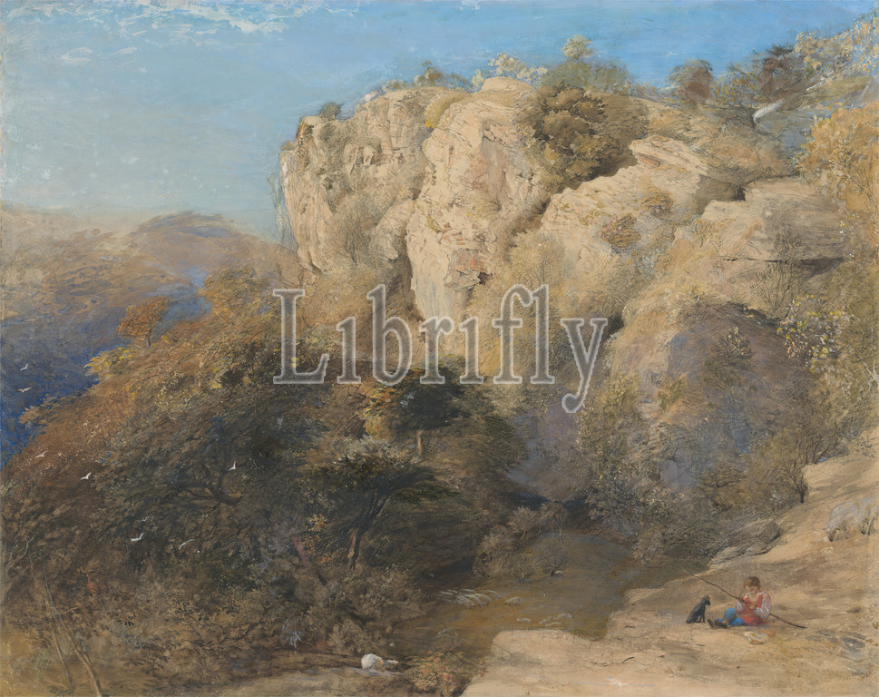 Rocky Landscape in Wales, Samuel Palmer, 1805–1881, British, active in Italy (1837–39), 1835 or 1836, Gouache and watercolor with gum and black chalk on moderately thick, slightly textured, cream wove paper, Sheet: 15 × 18 7/8 inches (38.1 × 47.9 cm), geology, landscape, rocks (landforms), science, Cymru, Europe, United Kingdom, Wales