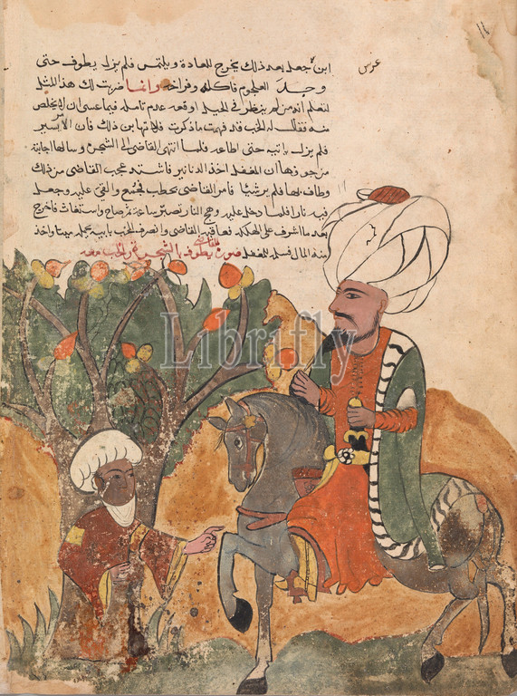 'The Rogue's Father Emerges from the Tree', Folio from a Kalila wa Dimna, 18th century, Attributed to Egypt or Syria, Ink and opaque watercolor on paper, 12.5 in. high 8.87 in. wide (31.8 cm high 22.6 cm wide), Codices