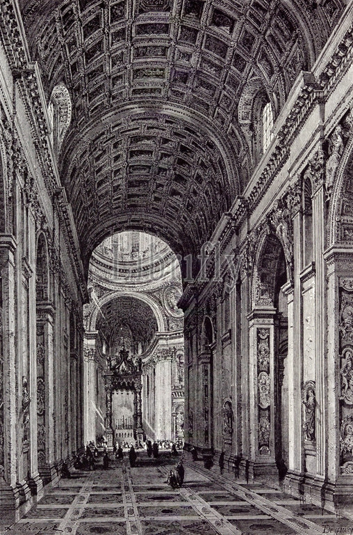 rome italy 1875, nave of st peter's, architecture, house of God, church, religion, dome, monument, christian, christianity, cathedral, liszt collection, vintage, old print, 19th century, victorian, retro, quint, lox, engraving